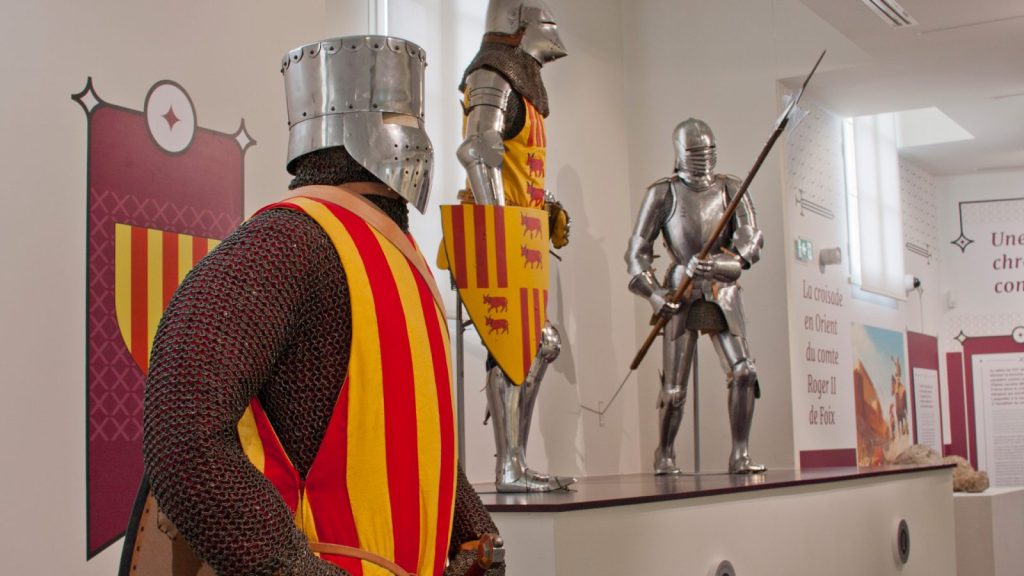 În exterior sunt atelierele, unde artizanii ne vor arăta cum se practicaun în evul mediu meseriile de armurier, tăiatul pietrei, forja ori cum funcționau mașinile de război sau de construcții…